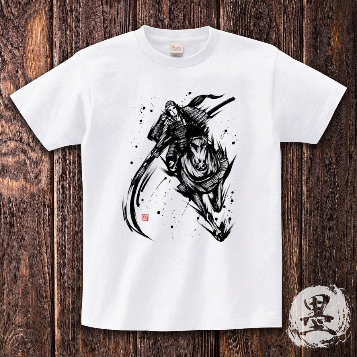 平安時代末期の女武者、巴御前をモチーフにした墨絵デザインです。